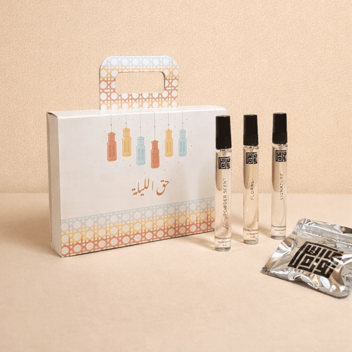 • طقم ٣ عطور (فلورال، سيغنتشر، باودر سنت): مجموعة متكاملة تضم ثلاث عطور رائعة، كل منها يحمل طابعًا مميزًا يجمع بين الأنوثة، الفخامة، والنفحات البودرية الناعمة.